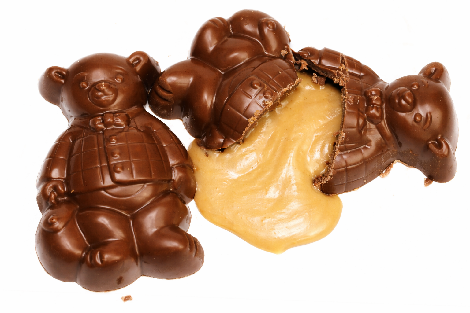 30 oursons en chocolat farcis de beurre d'érable pesant chacun 25 grammes.
