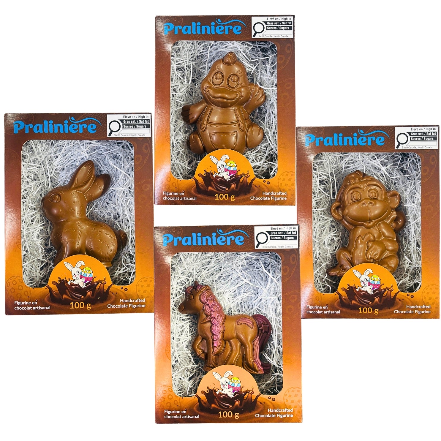 Ajoutez une touche de magie chocolatée à vos célébrations avec nos figurines en chocolat de Pâques format petit! Fabriquées avec soin dans notre chocolaterie artisanale au Québec, ces figurines sont le cadeau parfait pour Pâques ou une délicieuse surprise pour vos proches.