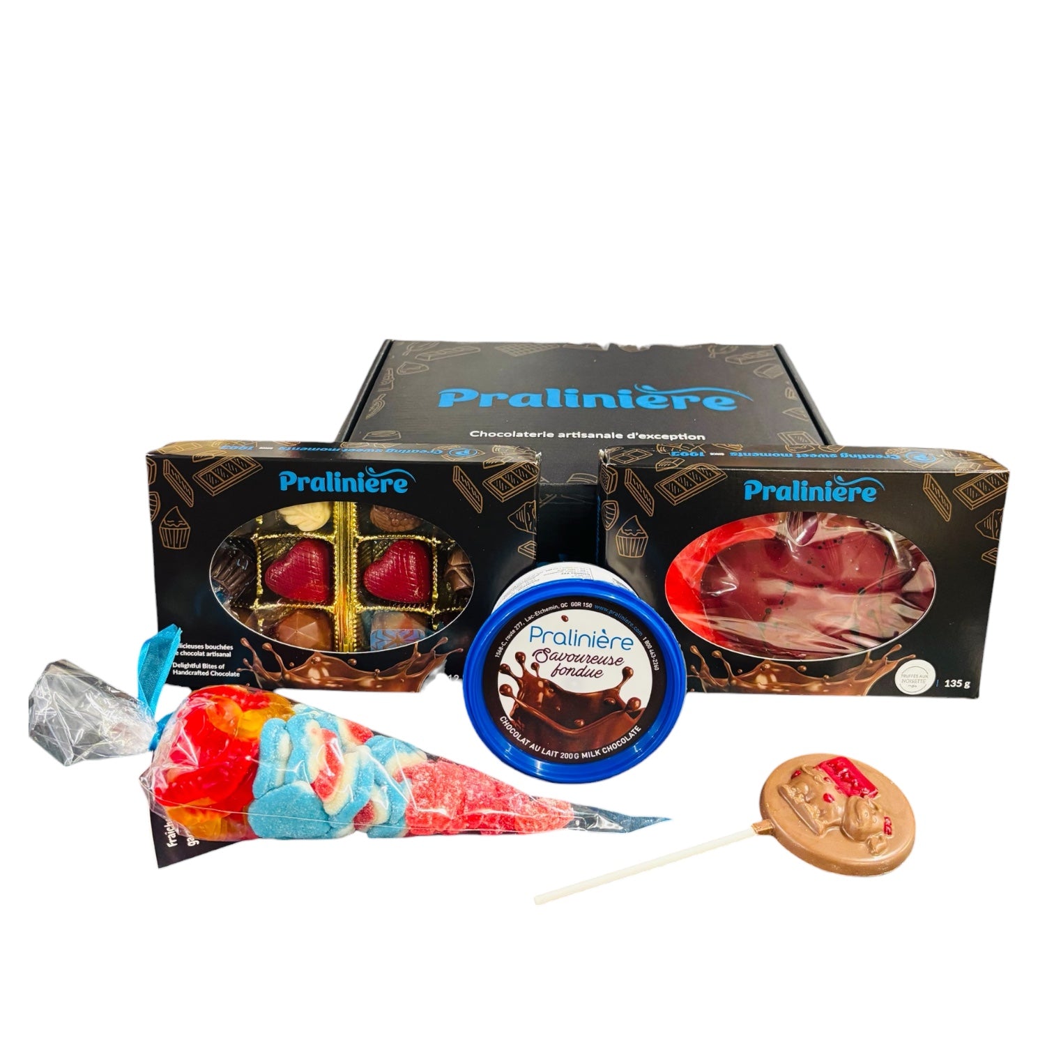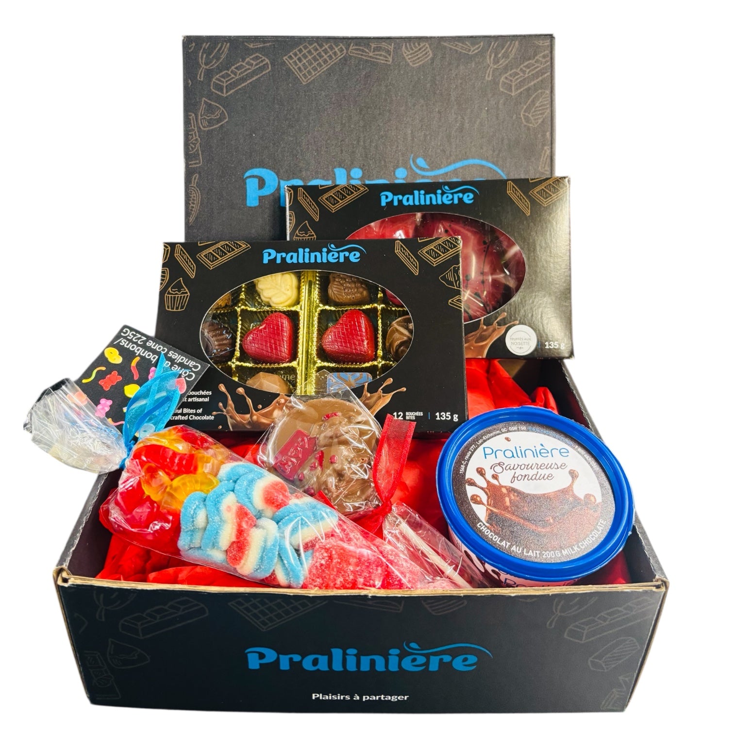 Une boite-cadeau faite pour les amoureux du chocolat! Un cadeau qui fera le bonheur de votre douce moitié et l'envie de vos enfants!